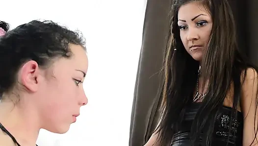 Faceslapping extreme by domina Diana Sky and her slave Patricia big blue eyes