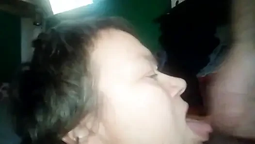 Erangan jalang dengan kontol keras di bagian belakang mulutnya