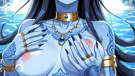 122. Tarian si setan berbulu biru dan pose seksi di air terjun (animasi ai)